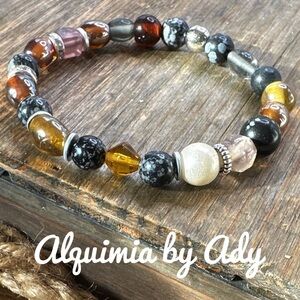 Snowflake obsidian beaded bracelet