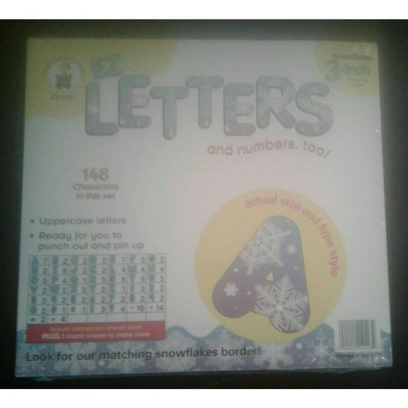 Snowflakes EZ Letters Number Combo Pack by Carson-Dellosa Publishing 3 Inch size letters. 148 pieces. New in package, but some of the plastic wrap has torn. But still in package, never opened or used.