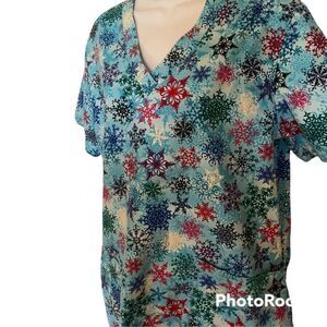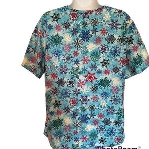 Like new, pretty snowflake print scrub top, size small. 40” bust 25” length