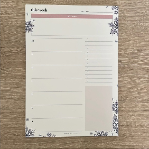 Erin Condren Snowflakes Weekly Goal Setting Notepad from Winter 2022 Seasonal Surprise Box