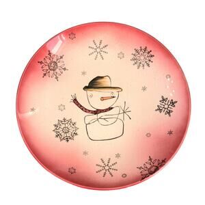 Snowman 15" Serving Bowl by Beaver Farm Pottery Red Christmas QVC