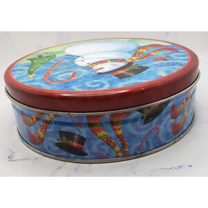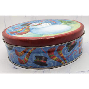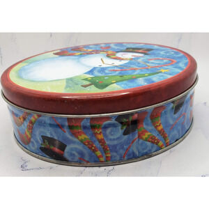 Snowman Christmas Cookie Tin Magic Frosty Scarf Top Hat Cardinal Sharla Fults