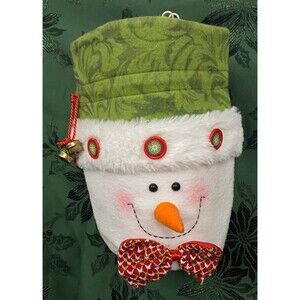 Snowman Sack with Jingle Bells Christmas Decor Candy Bag Drawstring Bag Xmas Gift Bag