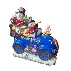 * Festive snowman cookie jar featuring a cheerful snowman in a cart full of presents