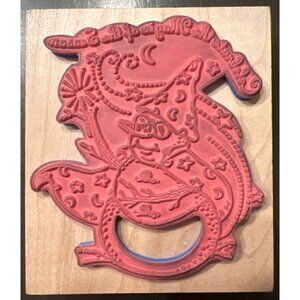 This Inkadinkado rubber stamp showcases a charming snowman wizard design, perfect for adding a whimsical touch to holiday crafts and projects.
