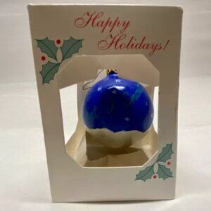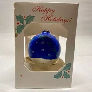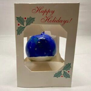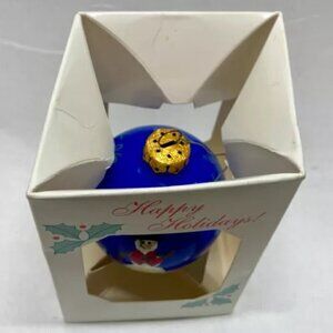 Snowman Christmas Tree Ornament Happy Holidays Seasonal Decor Blue White 2.5”