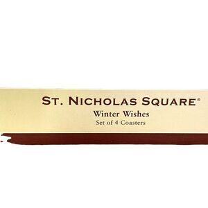 Snowman Coasters Ceramic Winter Wishes St. Nicholas Sq Boxed Set of 4 Large NEW