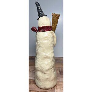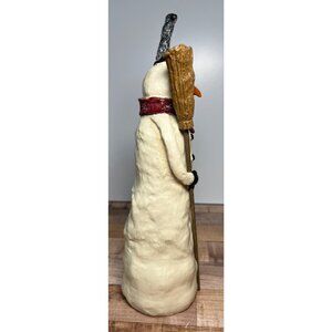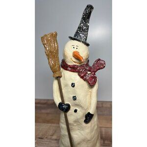 Snowman Figurine With Glitter Hat & Scarf Holding Broomstick Winter Decoration