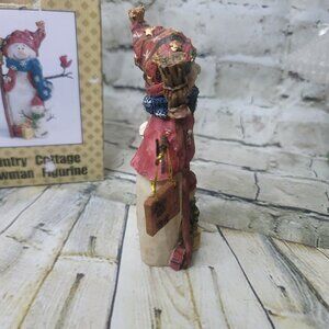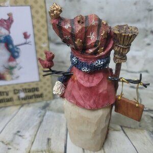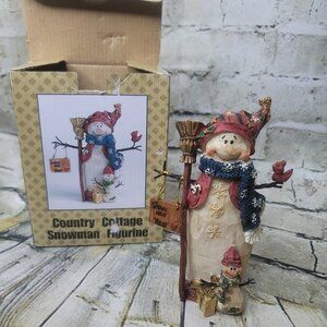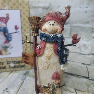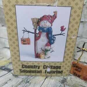 Snowman Figurine w Broom and Let it Snow Sign and Tree Sign Appx 8 Inches Tall