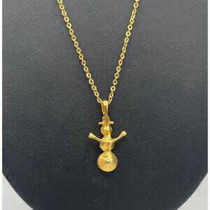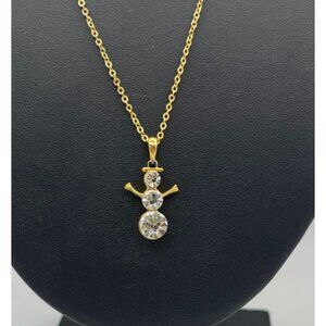 A charming snowman necklace featuring gold-tone metal and clear sparkling rhinestones. Perfect for adding a festive touch to any outfit.