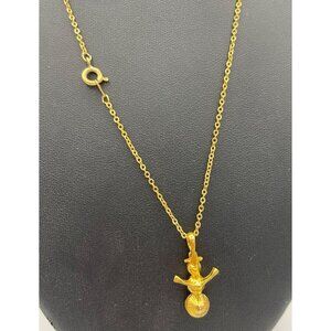 Snowman Gold Tone Clear Sparkling Rhinestones Necklace