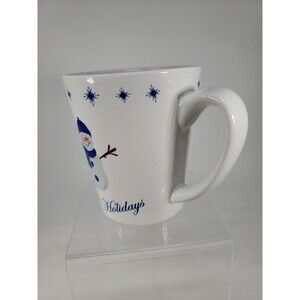 This Snowman Happy Holidays Winter Snow Coffee Cocoa Mug from Pacific Island Creations features a cheerful snowman design, perfect for the winter season. The ceramic mug has a capacity of 10 oz and is suitable for both hot and cold beverages. It is a licensed reproduction item with a multicolor pattern, ideal for enjoying your favorite drinks during the holidays. Pre-owned. Pre-loved. See photos for condition or wear. No chips, cracks or crazing.