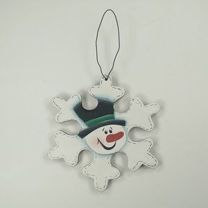 Snowman Head Snowflake Country Rustic Wooden 5" Christmas Ornament Wire Hanger
