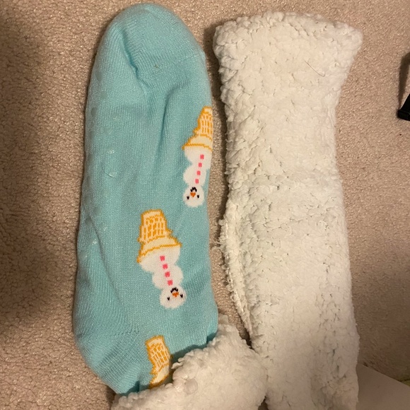 Super fluffy thick socks with 'Snow-cones' on them with a blue background