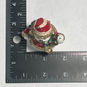 Red Jingle Snowman Jeweled Trinket Box has been cast in pewter, and enameled with Swarovski.