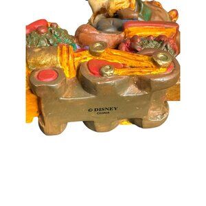 This set of two holiday ornaments features a cheerful snowman duo on a sled and Mickey Mouse riding a festive train. Both are crafted from durable resin, providing long-lasting holiday decorations. Ideal for enhancing your tree or seasonal display with charm and detail.