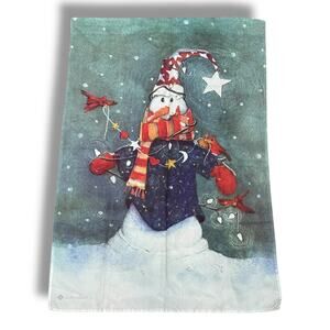 Snowman Mr Mittens House Flag Winter Outdoor Decor Scarf Hat Cardinals Julia Dobson Miner ~27"W x 39"L