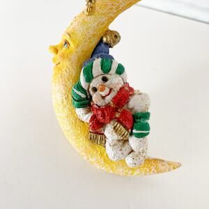 Snowman On Crescent Moon Face Ornament Celestial Man Christmas Anthropomorphic