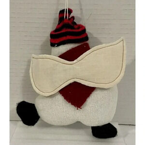 Snowman Ornament Angel Wings Red & Black Hat Red Scarf Christmas Tree Plush 8”