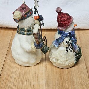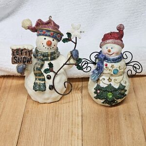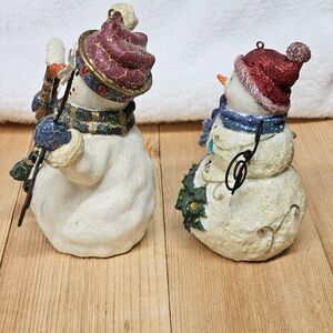 Snowman Pair Figurine Holiday Collection Lot of 2 Metal and Resin Mr & Mrs