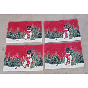 Snowman Placemats Table Runner 5 Pc Set Christmas Holidays WINTER SCENE SNOWMAN