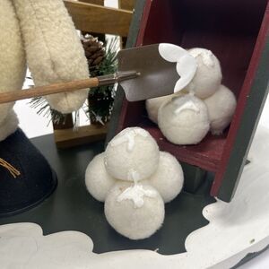 Snowman Plush Shoveling snowballs Red Sled Christmas Winter decoration Wooden