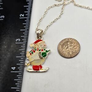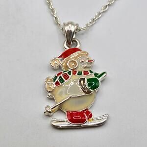 Snowman Skiing Necklace Christmas Holiday Pendant Silver Enamel Chain Gift Jewel