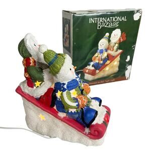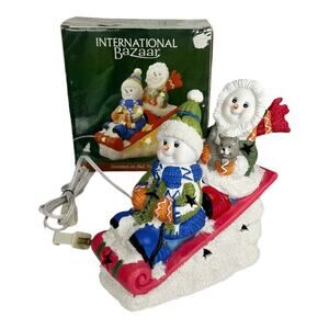 Snowman Sledding NIGHT LIGHT Winter Holiday Lamp International Bazaar Christmas