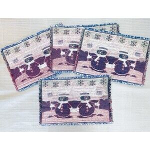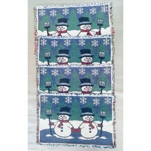 Snowman Tapestry Placemats Set of 4 Fringe Edges Winter Christmas Decor 17.5"x11