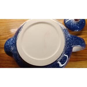 Snowman Teapot and 2 Snowman Mugs Blue Ceramic Christmas Winter. Unbranded in great shape. No chips or cracks.