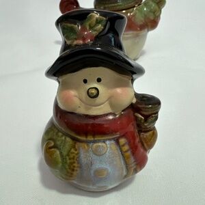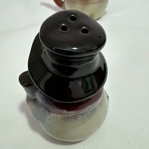 Snowman Top Hats Miniature Teapot Creamer Matching Salt & Beanie Pepper Shakers in very good used condition. Please see pictures for item description.