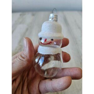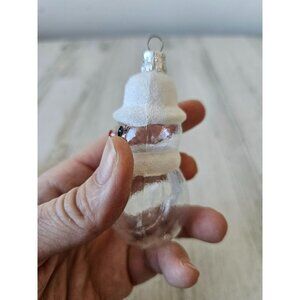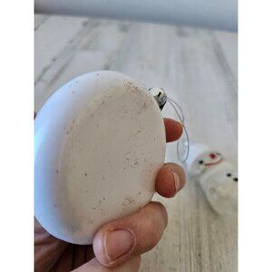 two smaller ornaments are about 3 in tall, both are glass, does have some mild wear on the paint, door county snowman is plastic of about 3 in, sold as a set
