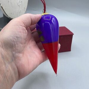 Snowman glass teardrop shaped Christmas Ornament in box. Painted from inside so no wear on paint . Approximately 4.5” long.
