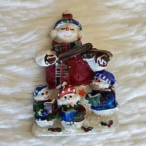 Snowman playing violin / 3 reading snow-kids christmas brooch. 2.5 in