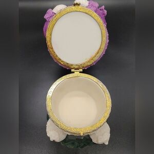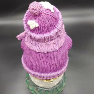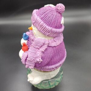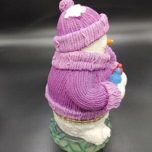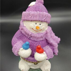 Adorable large ceramic Snowman trinket box in a sweater and hat holding birds. So sweet!