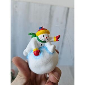 Snowman sparkle glitter Cardinal bird ornament snowball Xmas tree