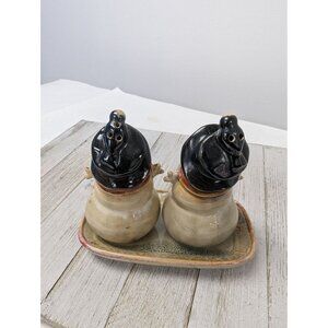 Snowmen Vintage Look Salt and Pepper Shakers with Tray 4 1/2"Tall