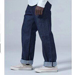 The Recycled Cotton Denim is designed with a standard fit with the hem hitting below the ankle. Selvedge denim will fit snug on the body and will loosen and form to the body with time.