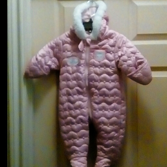 Pink snowsuit for infant little girl with Hello Kitty on it