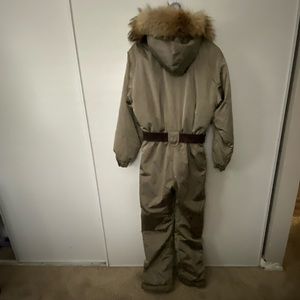 Postcard army green Snowsuit. Authentic fur rim. Super warm. I went snowboarding while dumping and I stayed warm and dry. Hate that I don’t fit in it anymore.