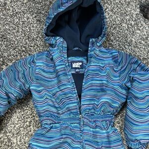 Lands End snowsuit in excellent condition. This is the best snowsuit I have had to date for my child. Super warm and stays really dry! Reinforced knees and bottom.