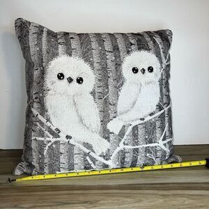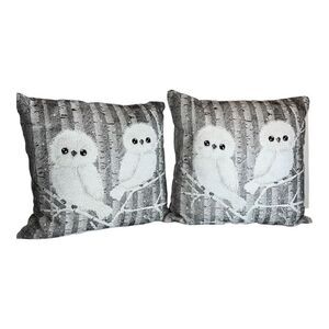 Snowy Owl Portrait Throw Pillow Set 2 Gray Silver Metallic Thread 16” X 16”