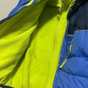Vibrant neon green fleece jacket by Snozu. Soft and warm material.