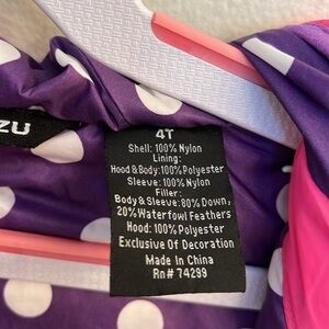 Snozu Hooded Down Filled Quilted Puffer Jacket Girls Size 4THooded Pink Full Zip