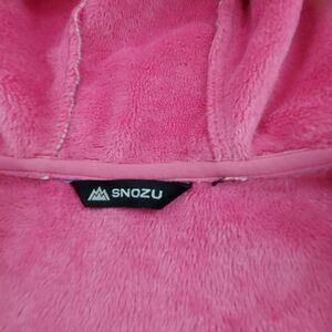 Snozu Hooded Jacket Girls Medium 10/12 Pink Blue Fleece Inside Full Zip Winter