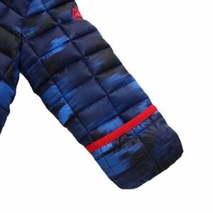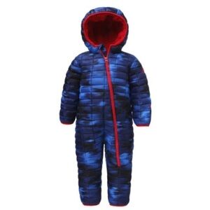 Features: Colors: blue Weather resistant shell fabric Write on ID name label included inside garment YKK full front zipper Attached fold over mittens and booties Made in China Content: 100% polyester Exclusive of Decoration Sizing: 24 months Size subject to availability Care Instructions: Close all zippers to wash Machine wash cold gentle cycle with like colors Use only non-chlorine bleach when needed Reshape Tumble dry low Do not iron Do not dry clean