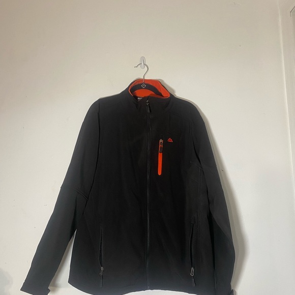 Snozu Performance Jacket in a size XL. All black with orange detailing. Chest pocket with zipper closure, two front pockets with zipper closure, and Velcro wrist adjustable closures. Interior is fleece lined. Warm mens jacket in good preowned condition. Some slight pilling in some spots but otherwise I’m great condition.