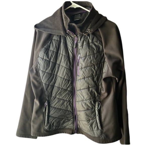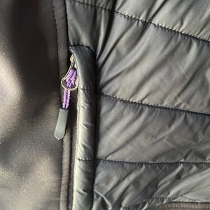Gently worn Snozu Performance jacket. Mostly black with purple zippers. She’ll is 100% polyester and the inside sleeves are lined with fleece. Super comfy and stylish and not too bulky!!