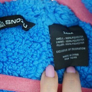 This toddler's snowsuit is crafted for warmth and durability, featuring a vibrant rainbow design. The hood provides additional protection from the cold, while the polyester material ensures insulation and comfort during outdoor activities. Ideal for winter adventures, this snowsuit combines functionality with a playful aesthetic, making it a versatile outerwear choice.