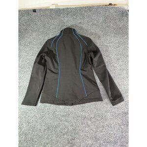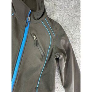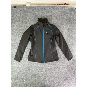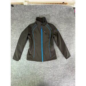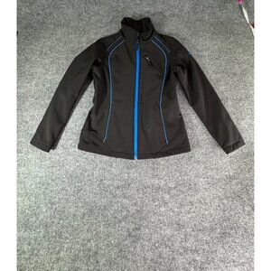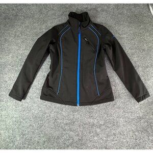 Snozu women's small platinum collection jacket in black. Features a sleek zip-up design, crafted from premium polyester spandex material for ultimate comfort. weatherproof midweight soft shell